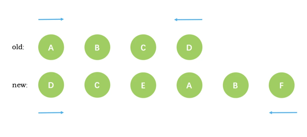 - 设置新旧 VNode 的头尾指针